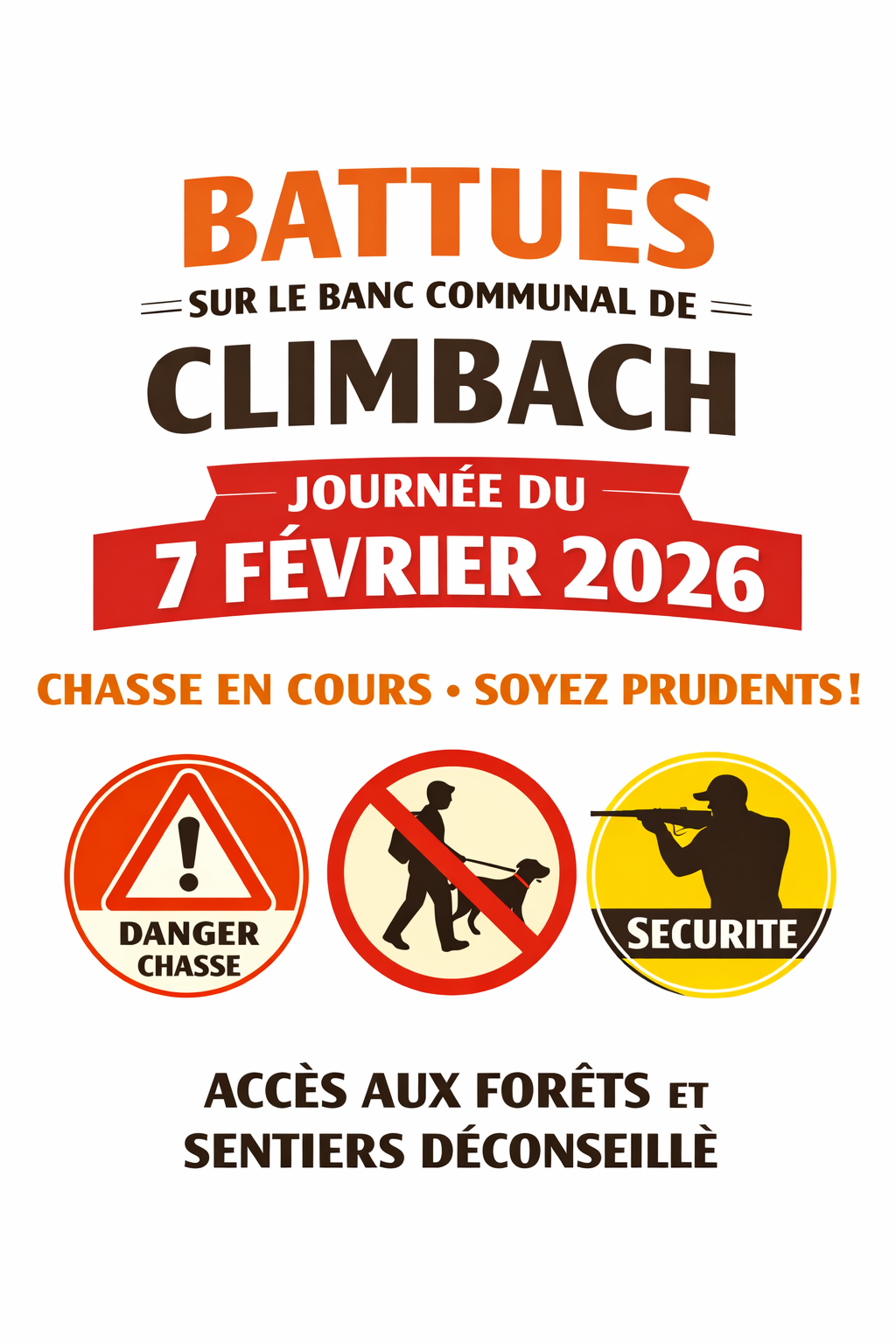 DATES DES BATTUES SUR LE BANC COMMUNAL DE CLIMBACH