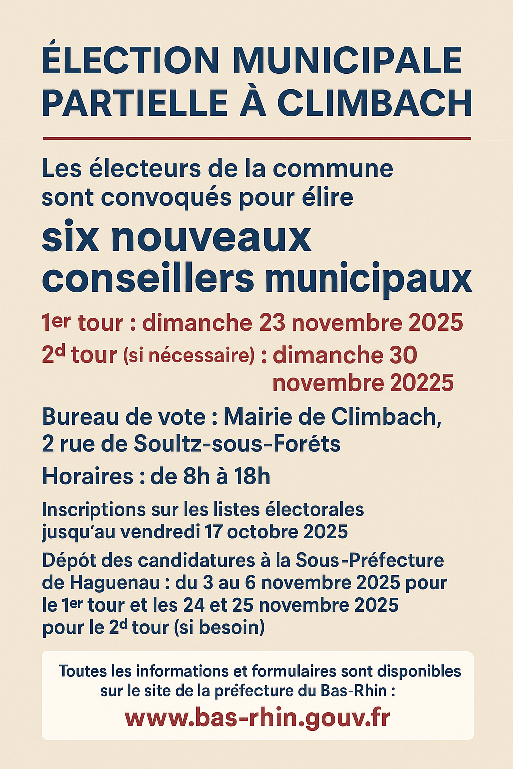 ELECTION MUNICIPALE PARTIELLE A CLIMBACH
