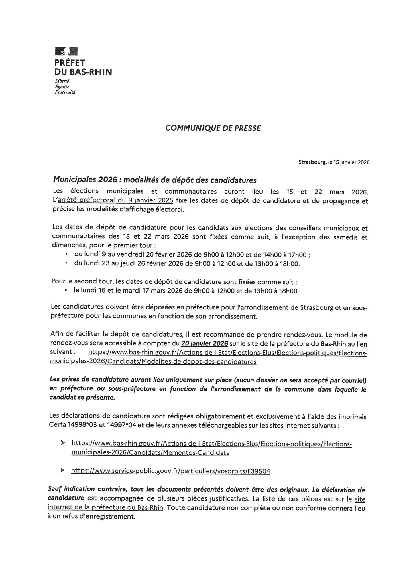 COMMUNIQUE PRESSE MODALITES DEPOTS DE CANDIDATURES